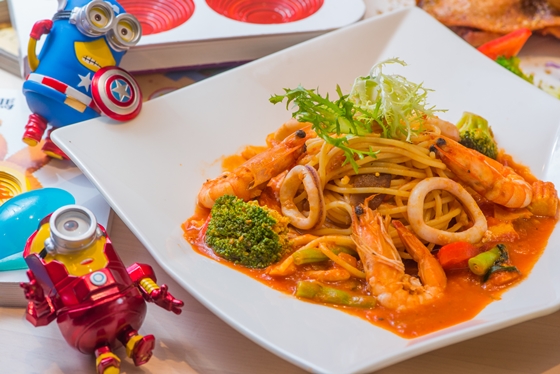 以紅蔥碎爆香加入各式海鮮料、蔬菜,以及自製番茄醬汁,大火收汁後,散翻豐富海味鮮甜,呈現濃郁美味口感。.jpg)